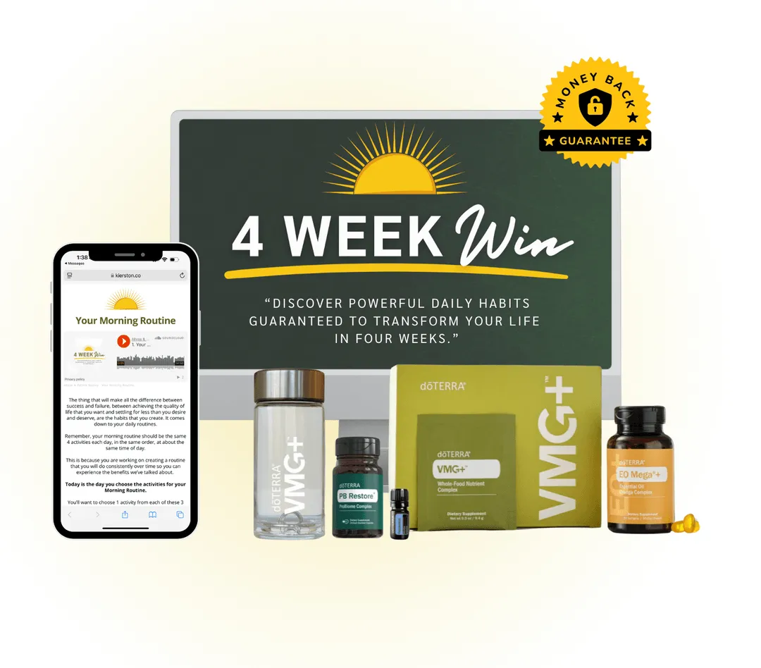 All you need to do is click the button below and claim your kit today! Once you’ve purchased your kit, just email [email protected] and ask for access to the 4 Week Win Program. Your doTERRA products will be shipped directly to you.It’s time to say goodbye to chaos and overwhelm and hello to a life of energy, confidence and success.