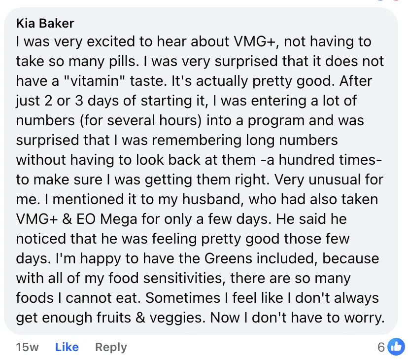 The short answer is absorption and ingredients. When you take most supplements you are lucky to absorb 10-20% of the ingredients listed. That's like buying a tank of gas and still having little to no gas. VMG+ gives you 4X more nutrient absorption. This makes a dramatic difference in how your body can be supported and the results you feel.The reason for this increase is the cutting edge use of liposomes, strains of probiotics like Lactiplantibacillus plantarum, Lactobacillus johnsonii and essential oils. This improves gut health, protects nutrients and prevents the degradation of sensitive vitamins and minerals by stomach acids and digestive enzymes. Powerful ingredients only matter if your body can use them. Absorption is everything.